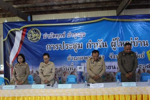 โดยมี หัวหน้าส่วนราชการระดับอำเภอ กำนัน ผู้ใหญ่บ้าน แพทย์ประจำตำบล สารวัตรกำนัน และผู้ช่วยผู้ใหญ่บ้าน เข้าร่วมการประชุม โดยพร้อมเพรียงกัน