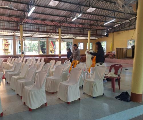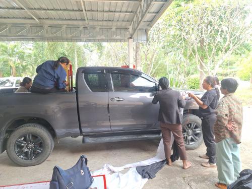 นางสาวสุภาภรณ์ กุยรัมย์ พัฒนาการอำเภอพุทไธสง พร้อมด้วย เจ้าหน้าที่พัฒนาชุมชนอำเภอพุทไธสง คณะกรรมการกองทุนแม่ของแผ่นดินบ้านจิก และบุคลากรจากองค์การบริหารส่วนตำบลบ้านแวง เตรียมความพร้อมด้านสถานที่และการประดับรถยนต์ ในการจัดพิธีอัญเชิญเงินพระราชทานขวัญถุงกองทุนแม่ของแผ่นดินบ้านจิก หมู่ที่ 4 ตำบลบ้านแวง อำเภอพุทไธสง จังหวัดบุรีรัมย์